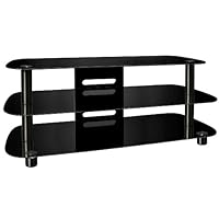 This Sleek and Modern design with front column legs features a scratch resistant powder-coated steel frame supporting elegantly rounded black tempered safety glass shelves. It accommodates most Flat Panel Plasma or LCD TVs up to 56-Inch, plus at least 4 audio video components and a center channel speaker. This piece also offers Bello's integrated CMS Cable Management System to hide wires and interconnect cables.