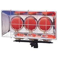 The Mr. Heater MH42T 8,000-42,000 Btu triple heater is a step up from the two-burner model, giving you the flexibility of using one, two, or three burners. The unit mounts directly to 20- to 100-pound cylinders. It uses infra-red heat, which means that it warms the objects in front of it, not the surrounding air. This gives you more heat per Btu, which means that using all three burners at the highest of the three settings will keep you warm even in miserably cold situations. Each element shuts off automatically with loss of flame. Do not use in unventilated areas. One-year limited warranty.--Josh Dettweiler