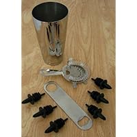 Looking to add an additional mixology set to your bar?Just starting out and want to see some of the most commonly used tricks of the trade?Then this nine piece set is perfect for you!Kit includes: 1 28 oz Cocktail Shaker Tin, 1 4 prong wire cocktail strainer, 1 Stainless steel speed opener / popper, and 6 Bottle Pour Spouts.Great Gift Idea!